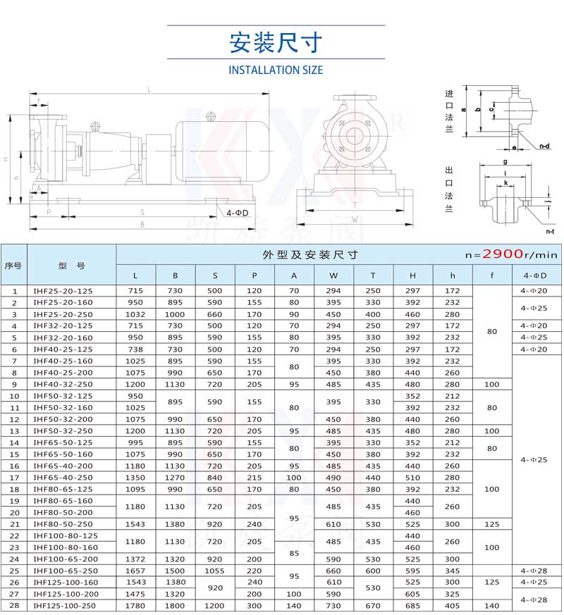 IHF鹽酸泵是凱旋推出的一款能輸送任意濃度鹽酸的專用泵,泵體采用金屬外殼內襯氟塑料(F46/PFA),泵蓋、葉輪均用金屬嵌件外包氟塑料(F46/PFA)整體燒結壓制而成,軸封采用外裝式波紋管機械密封,靜環選用氧化鋁陶瓷(或碳化硅),動環采用四氟填充材料,耐腐耐磨密封性好。泵的進出口均采用鑄鋼體加固,以增強了泵的耐壓性。 該泵具有耐腐、耐磨、耐高溫、不老化,機械強度高、運轉平穩、結構先進合理、密封性能可靠、拆卸檢修方便、使用壽命長等優點。適用于-20℃~120℃溫度條件下輸送任意濃度的硫酸、鹽酸、氫氟酸、硝酸、次氯酸鈉等強酸強腐蝕介質而不受損。