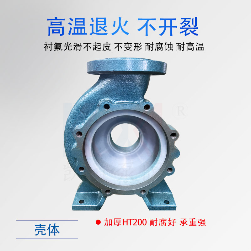 IHF型氟塑料離心泵,為單級單吸懸臂式離心泵。過流部件使用氟塑料、氟合金等材料制造。氟合金為聚四氟乙烯和聚全氟乙丙烯粉料按照配比充分混合,通過高溫燒結讓粉料熔合后,再模壓成型。氟合金材料同時具有聚全氟乙丙烯的韌性和聚四氟乙烯的耐溫性。IHF系列離心泵耐腐蝕效果優秀、通用性強,適用于較復雜的工況。