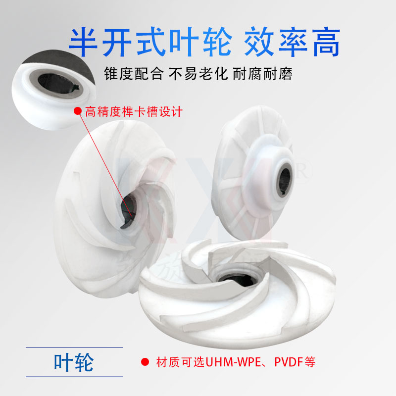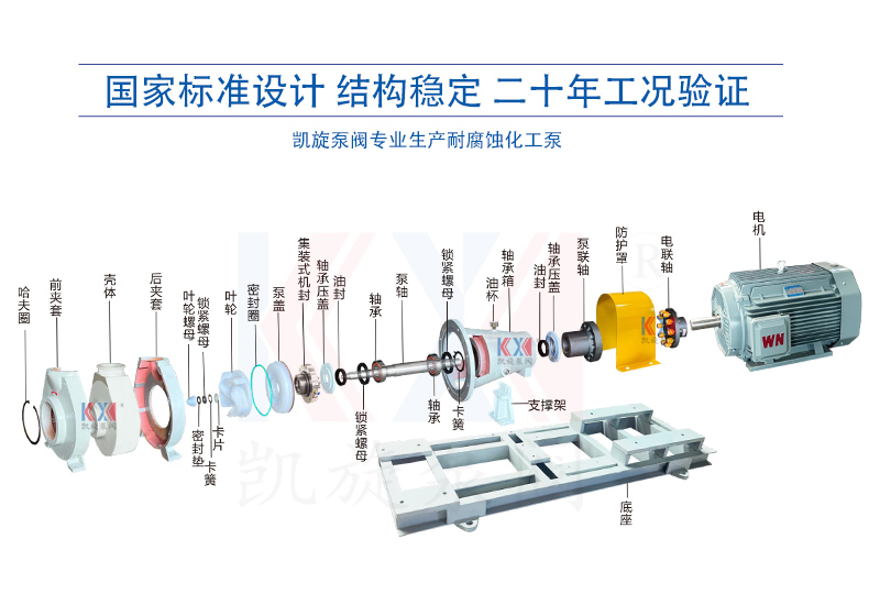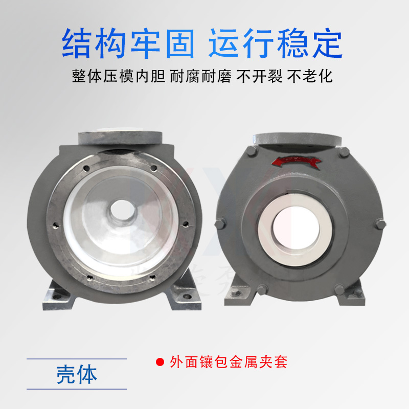 KJB型耐腐耐離心泵,又稱夾板泵,是參照國外夾板泵技術(shù),重新研發(fā)優(yōu)化而成,過流部件使用耐腐耐磨超高分子量聚乙烯、聚偏氟乙烯等材料制造。泵殼為分體式夾套,內(nèi)鑲可拆卸式泵體,整體結(jié)構(gòu)厚實(shí),運(yùn)行穩(wěn)定,能有效杜絕長(zhǎng)期室外運(yùn)行造成的塑料模壓件老化等現(xiàn)象。葉輪采用半開式結(jié)構(gòu),背葉板上均勻分布葉片,流道加寬介質(zhì)通過率高。密封使用耐腐耐顆粒集裝式雙端面機(jī)械密封,并可根據(jù)用戶需求配置相應(yīng)的沖洗方案。